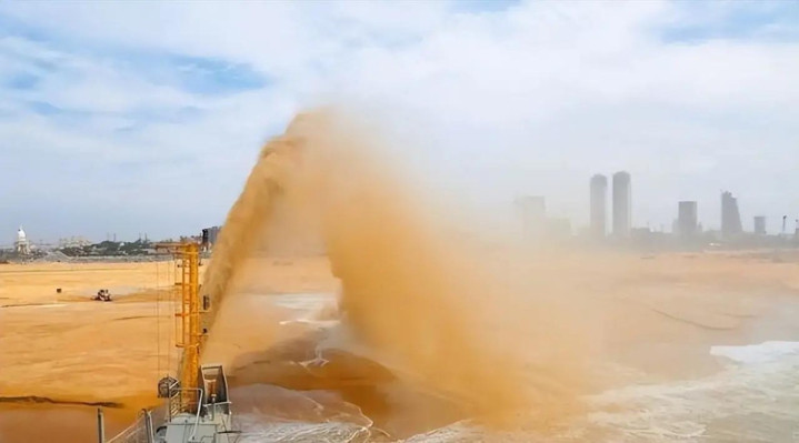 填海造岛工程用的吹沙填海技术,用沙袋围成围墙,再用挖泥船从海底抽沙,经由管道送到指定位置,就形成了陆地,填海设备特别先进,像“天鲸号”和“天鲲号”都是中国自主研发的挖泥船,天鲸号每小时抽4500立方米的泥沙,送6公里远,天鲲号更厉害,每小时挖沙6000立方米,送15公里远,这些设备效率高,抗腐蚀耐磨能力达到现在的国际先进水平,给填海工程快速推进带来很大帮助。